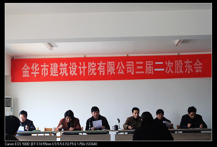 2011年3月26日,金華市建筑設(shè)計(jì)院有限公司第三屆二次股東會(huì)在公司十一樓會(huì)議室召開,會(huì)議對(duì)2010年度公司董事會(huì)報(bào)告、監(jiān)事報(bào)告、財(cái)務(wù)報(bào)告等進(jìn)行了審議和表決。