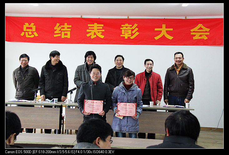 第四項(xiàng):傅志寶宣讀“關(guān)于2011年度公司優(yōu)秀員工評(píng)選結(jié)果的通知”并頒獎(jiǎng)。設(shè)計(jì)一所吳冬云、許毅敏;設(shè)計(jì)二所王英、陳卓;方案所朱奇;后勤管理葉肖;雙維公司林秀娟分別當(dāng)選;